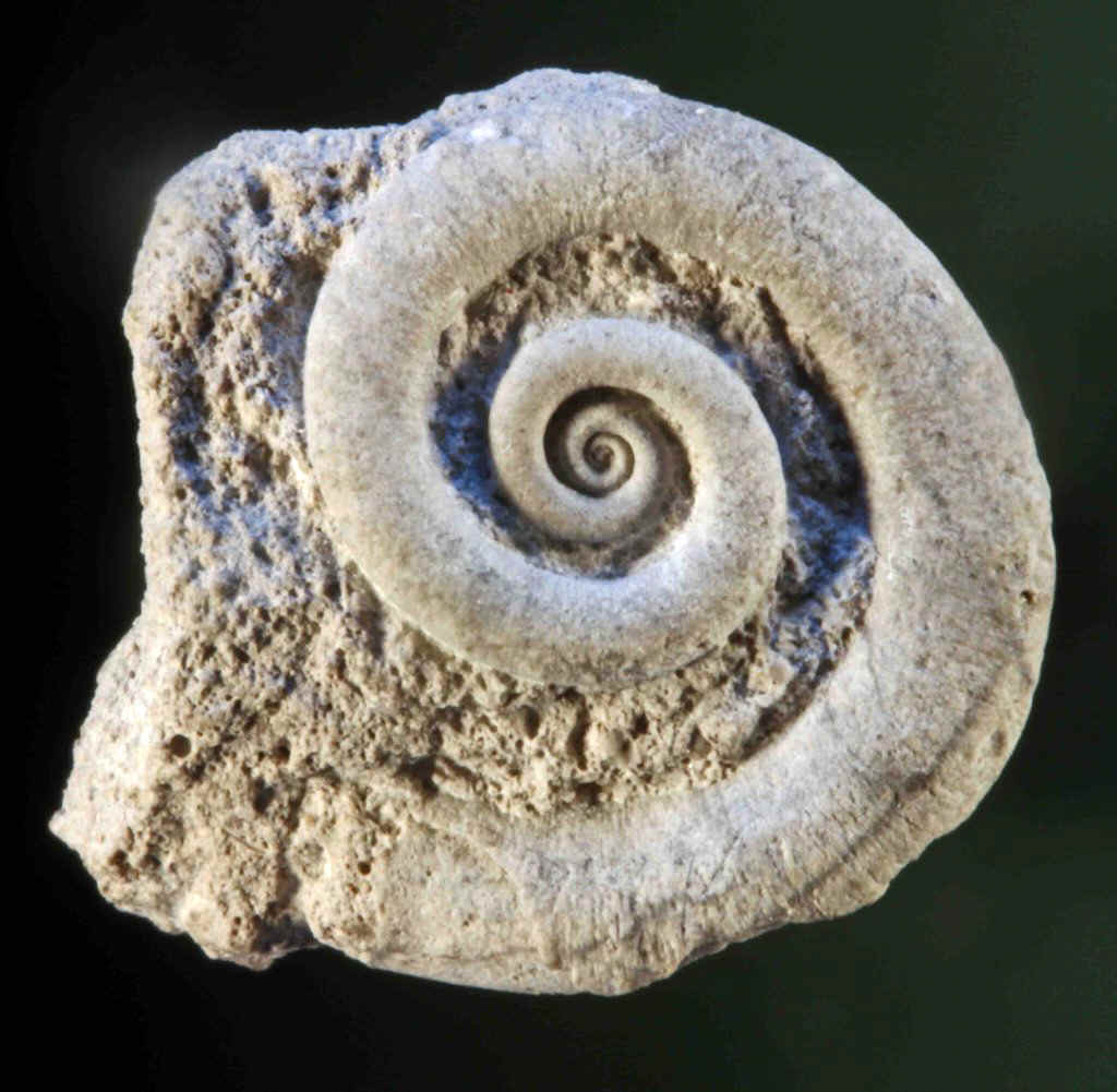 Schnecke Serpulospira serpula (de Koninck); Durchmesser 1,2 cm.