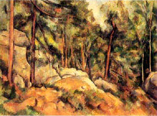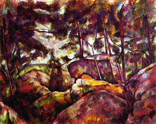 ![]() Paul Cézanne: "Felsen-Wald von Fontainebleau" (um 1895), Öl auf Leinwand. |